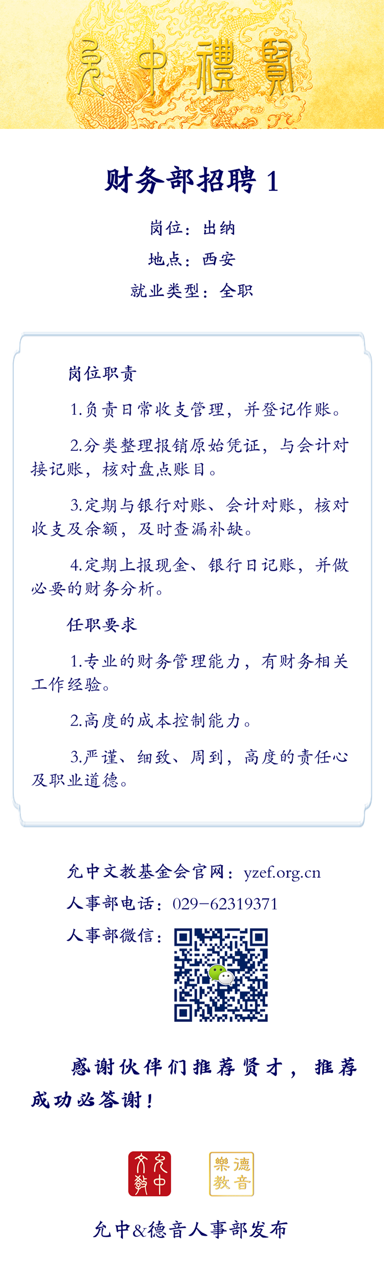 如果您热爱中国文化,钟情于文化与教育事业,具有相当的领悟、体验与一定的工作经验,欢迎您走进我们,了解允中,和我们一起创造价值和精彩!