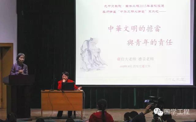 下半场,谢启大老师从自己丰富的人生经历出发,讲述了她与国学的渊源,国学带给她的无穷益处。接着从政治、历史、国家方面,讲述了海峡两岸对于国学发展与弘扬的历程,以及对当代大学生传承文明责任的期许,让我们深刻感受到民族振兴之大任!
