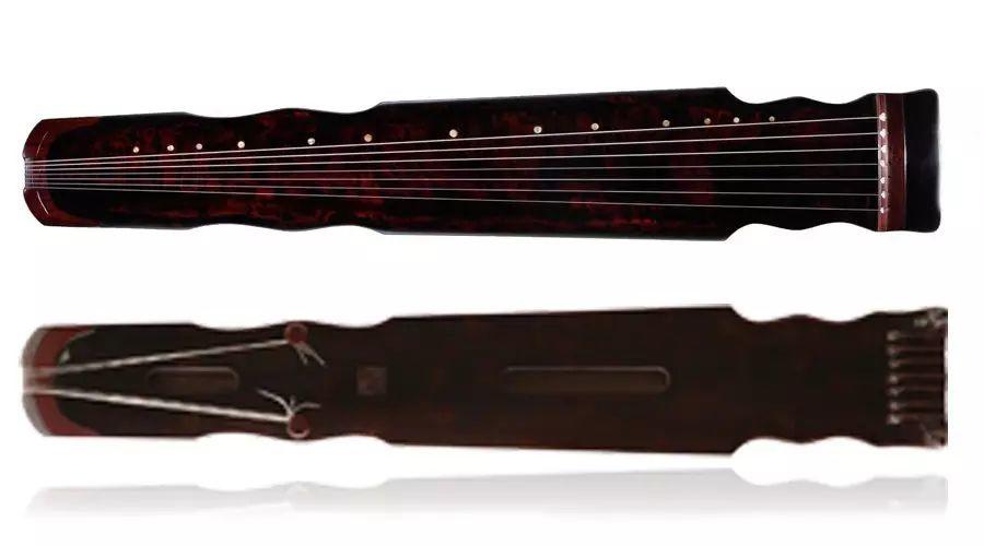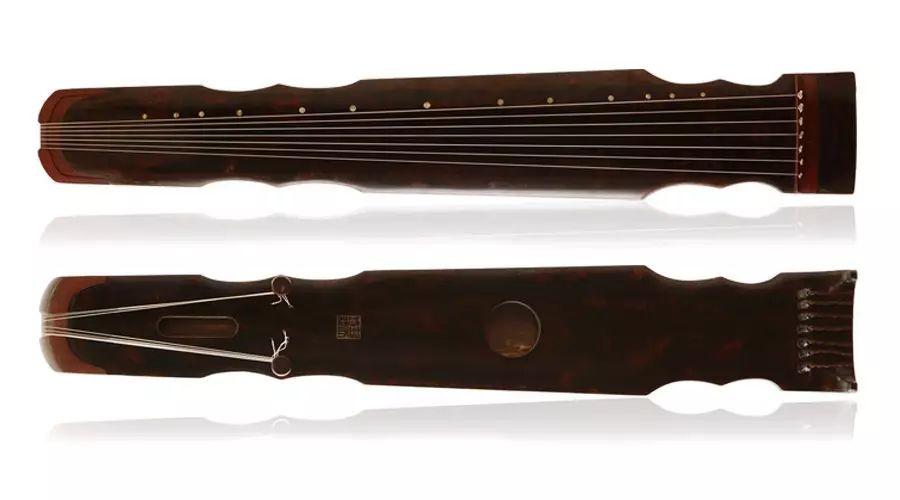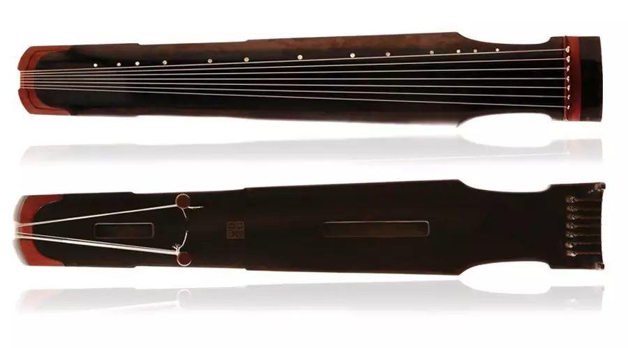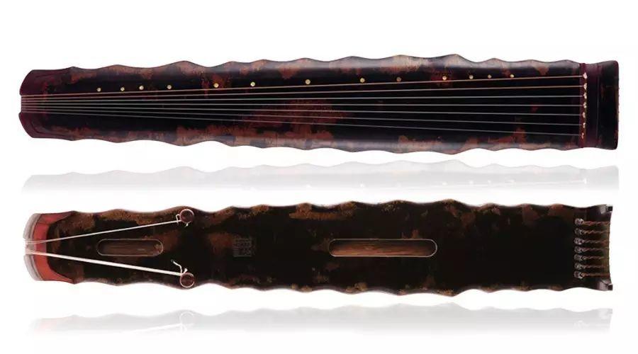 宋琴“松石间意”,原系清宫旧藏,亦是清乾隆帝最为喜爱的一张琴。其“项与腰皆作凹入半月形,相交处复作凸出半月形,通体极长大,池沼皆长方”。(《琴学随笔》)此琴在2010年北京保利秋季拍卖会上以1.3664亿元拍出,创造了世界古琴拍卖纪录,同时也创造了世界乐器拍卖纪录。钧天坊制“松石间意”,造型如初,制作精美,黑漆中隐显红光,小冰裂牛毛断纹,继承了原琴的“其音清穆,其德渊懿”的音色,亦如同乾隆御题诗所言“古锦囊轁龙门琴,朱弦久歇霹雳音”,声若霹雳又不失和净。