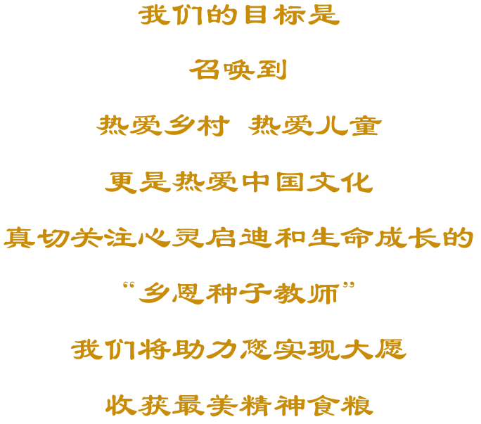 我们在探索,如何让“综合国学教育”扎根乡村,让真正热爱教育的乡村教师得到最优质的教学资源与成长机会,让乡恩之光真正照亮九州大地!