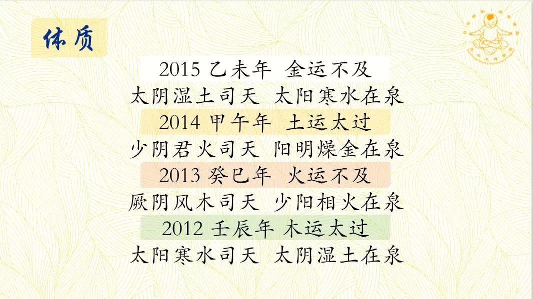 每一年出生的孩子,发病走向不一样。这个很重要。五千年前我们的古人就已经具有高度的“大数据”智慧,根据十天干、十二地支推演出哪一年哪些疾病会多,哪些脏腑比较容易出问题。