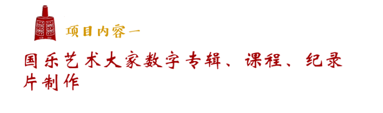 为国乐艺术大家们制作数字专辑、课程、纪录片等,抢救式整理其教育研究资料、艺术资料等,把传承保护工作做到实处,为时代贡献文化艺术精品的同时,将高雅艺术资源直接转化为教育资源。