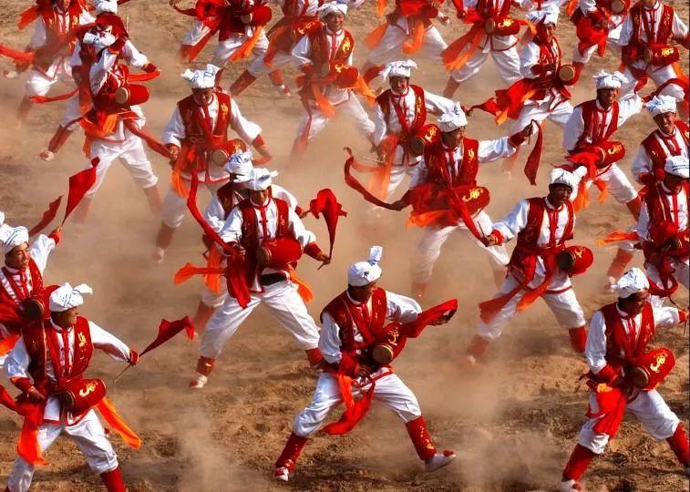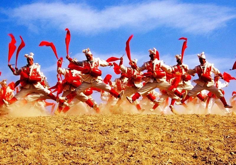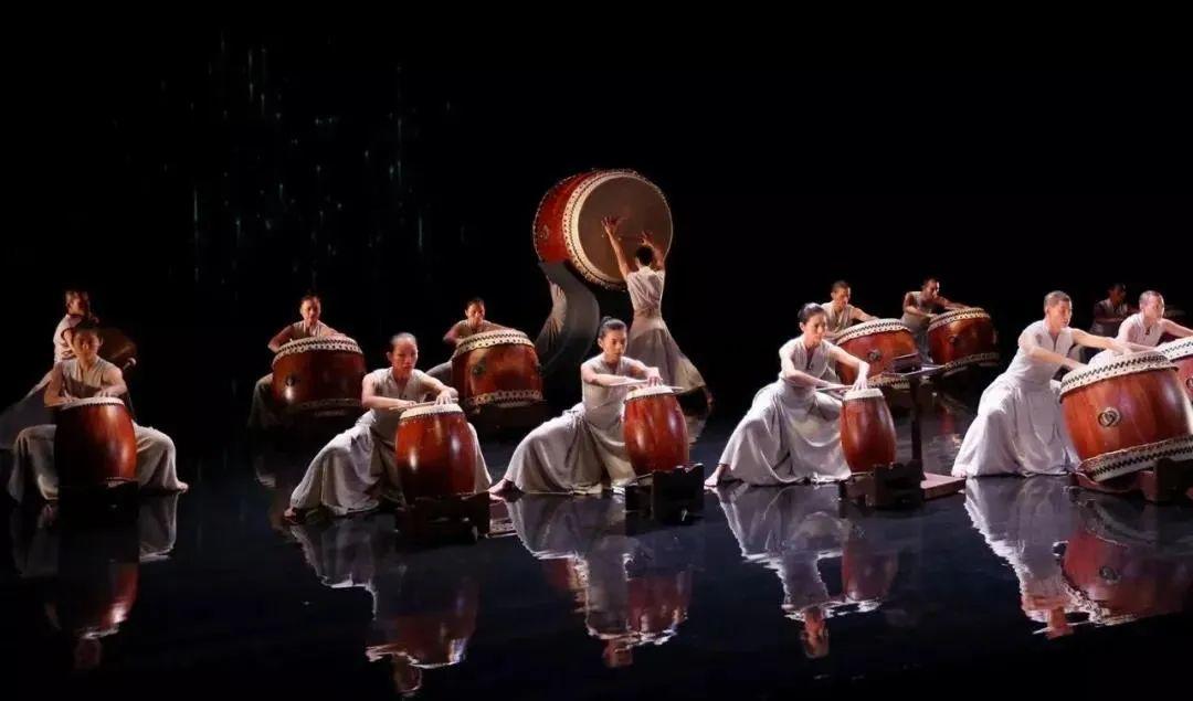 (优人神鼓演出剧照。优人神鼓的表演,全程没有任何旁白、对话。只有演员的肢体动作、舞蹈与打鼓融为一体,呈现出一幅动中有静,静中有动的诗意画面。)