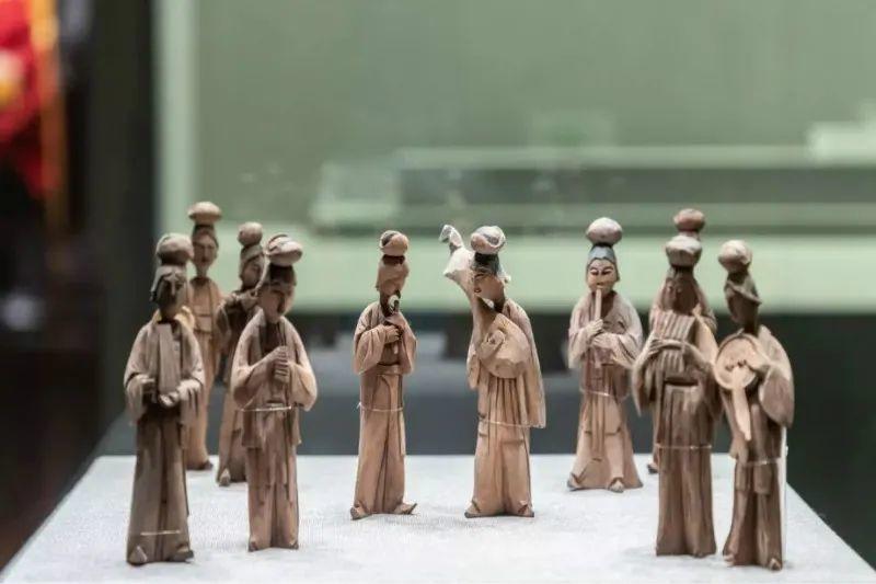 (女伎乐木俑 宋[960—1279年]2014年安徽省芜湖市南陵县弋江镇铁拐村铁拐组宋墓出土,南陵县文物管理所藏。)