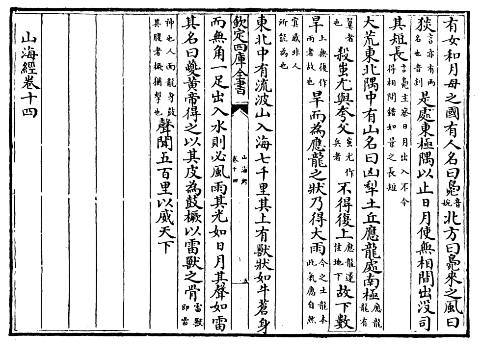 (《山海经》中关于夔牛的描写,景印《文渊阁四库全书》)