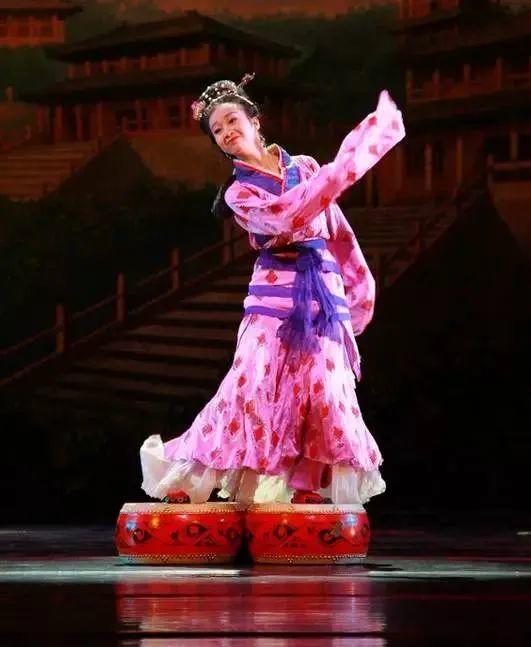 (北京舞蹈学院汉唐古典舞《相和歌》演出剧照, 编导:孙颖教授,选自舞剧《铜雀伎》片段。表现中国汉代独有的乐舞表现形式——踏盘踏鼓,边歌边舞。)