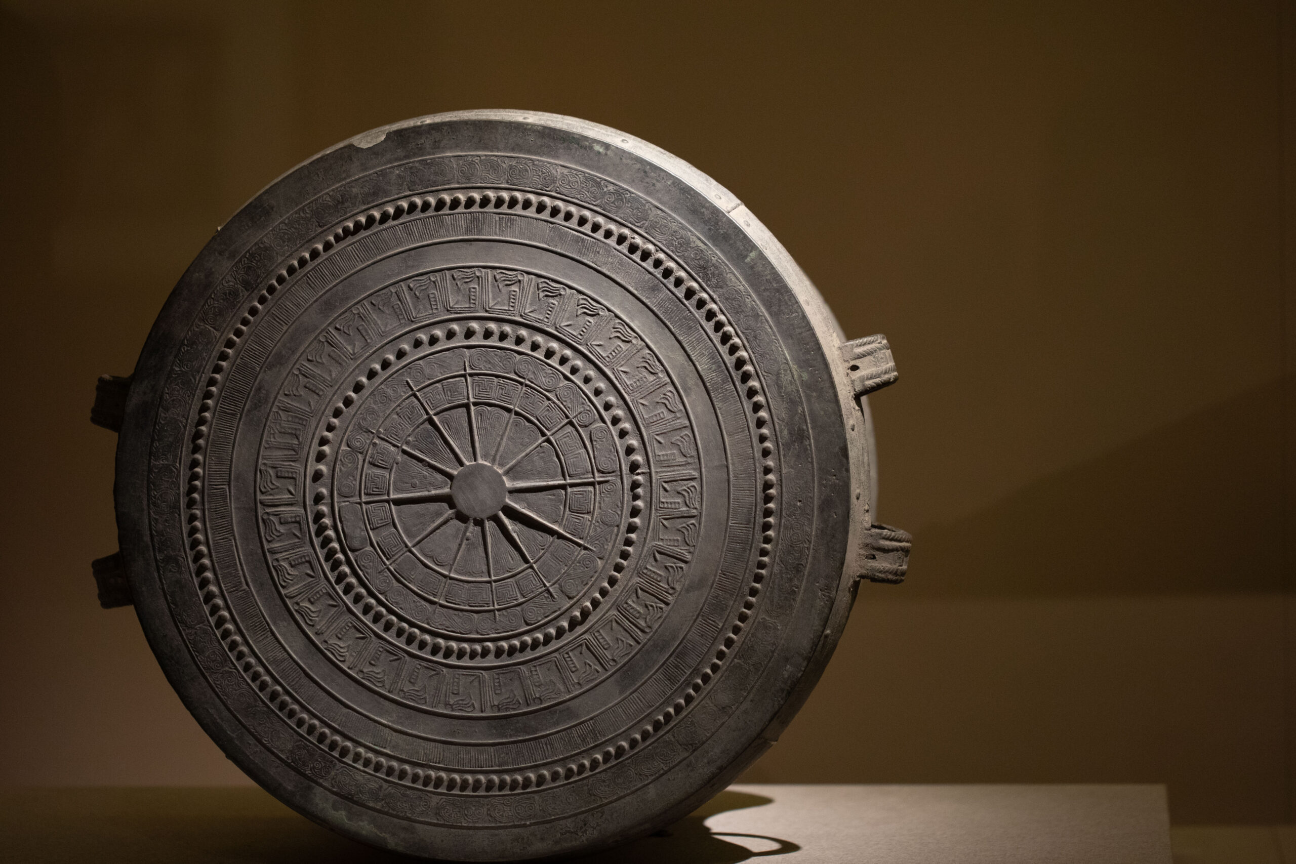 (万家坝铜鼓,战国,中国国家博物馆藏。此式青铜鼓大约是春秋中期之后,流行于今云南、广西、贵州、广东、湖南等地,具有鲜明的地方特色。摄影:苏木)