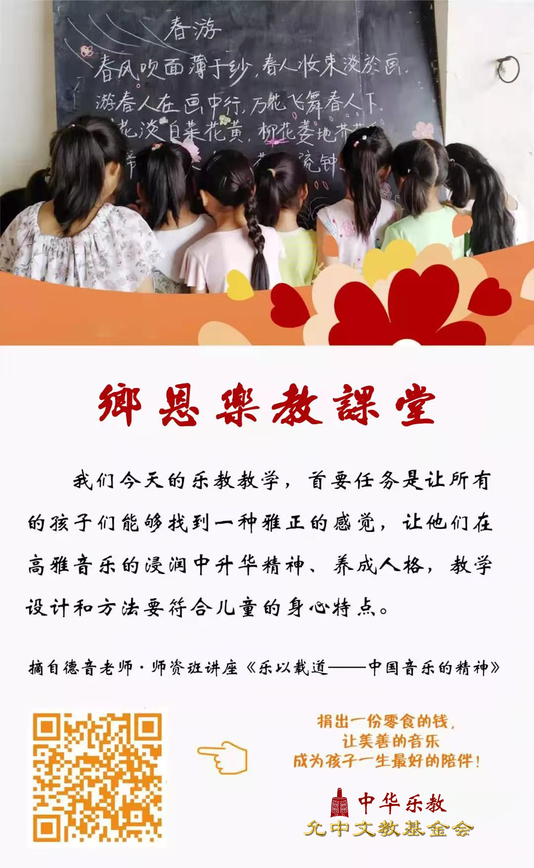 “乡恩乐教课堂”是以中国文化内涵与乐教内容为根基的立体化乡村艺术教育援助公益项目,解决乡村学校音乐教师、优质音乐教育资源极度匮乏的问题,也是中华乐教的现代重建在乡村校园的扎根落实。