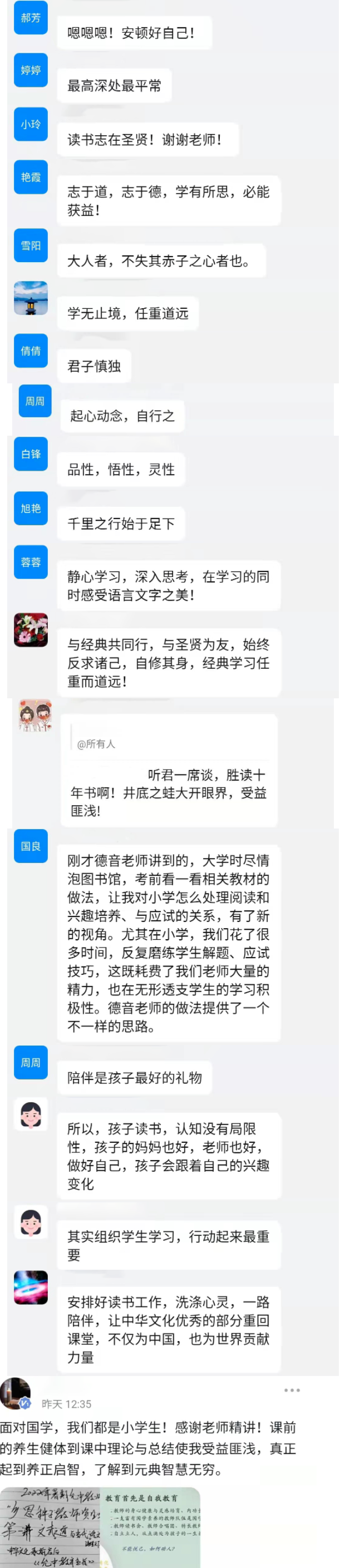 德音老师带着大家在老子、孔子、孟子、庄子等经典中游刃有余自由旅行观景,以经解经,在游戏中感悟圣贤经典与生命真相的融合!敬佩之余,提升了我的文化自信和信仰!
